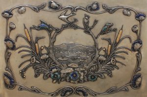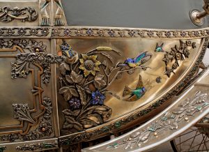 Materials: iron, wood, silver, gilded silver, enamel, glass, silk