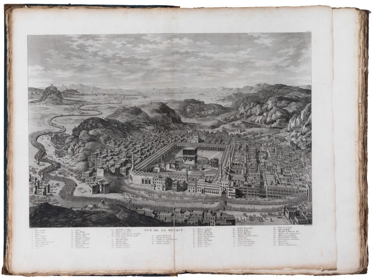 Other Notes: Published in two illustrated volumes, the Tableau Général was written by Ignace Mouradgea d’Ohsson, a Swedish diplomat of Armenian descent living in Istanbul. The first volume examines Ottoman religious practices, whilst the second deals with the Ottoman state. Amongst the most impressive engravings from volume II are a panoramic view of Mecca and a depiction of the Hajj caravan (the surreh emineh) departing Istanbul for Mecca.