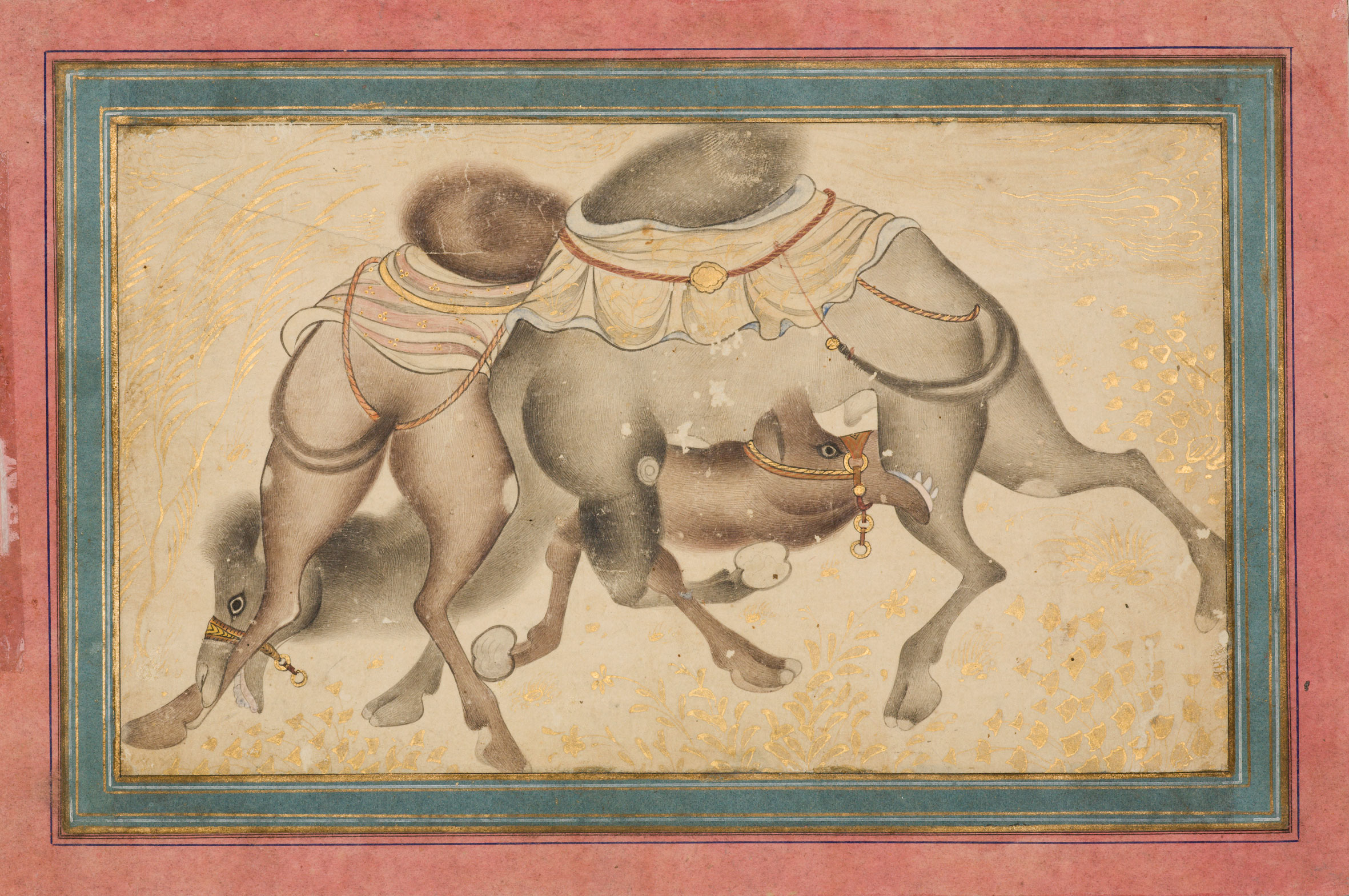 Materials: wash drawing, on gold-decorated ground; margins of coloured paper