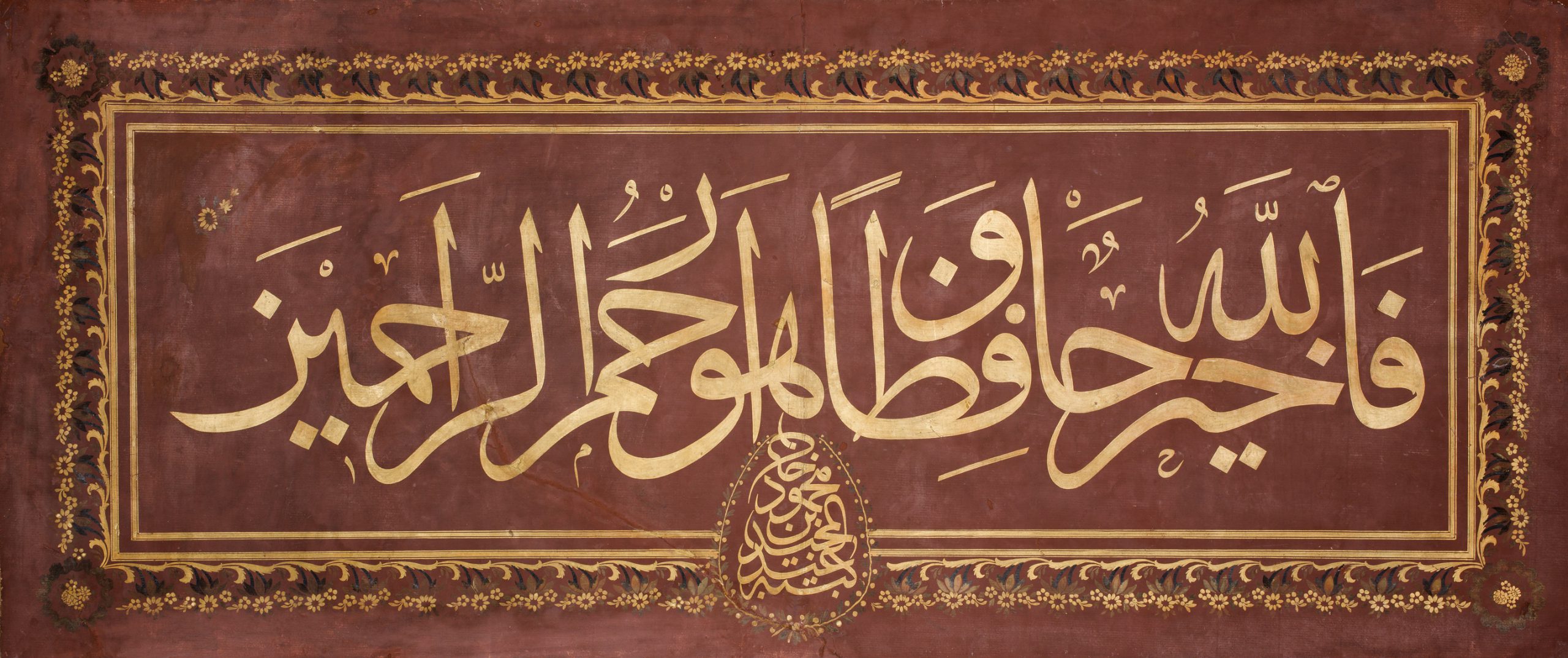 The composition, from surah Yusuf (XII), verse 64, is signed ‘Abd al-Majid ibn Mahmud Khan, that is Sultan Abdulmajid I (Abdülmecid I; r. 1839–1861).