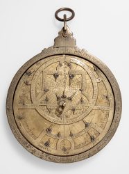 The globe bears the classic Ptolemaic constellations in their standard pictorial forms together with their designations in Arabic, and approximately 1018 stars are indicated by silver points, though none of these bear labels. The rings are all precisely graduated, with both the conventional Arabic numbers and their abjadi forms. It is attributable to the workshop of the Lahuri instrument-maker, Lalah Balhumal.