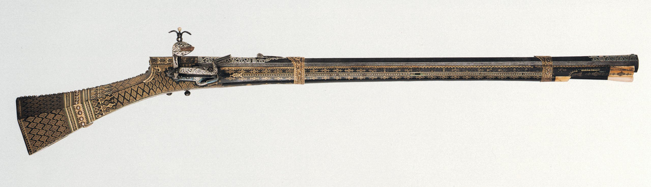 The veneering and inlay of musket-stocks with fine woods, ivory and gold, silver or brass wire was part of a woodworking tradition that developed early in the Ottoman empire; the Qur’an chest made in 911 AH (1505–6 AD) for the mosque of Bayezid II in Istanbul, which was inaugurated in 1505, bears the signature of such an inlayer, Ahmed ibn Hasan. In his account of Bitlis in 1655–6, Evliya Çelebi gives a list of muskets by the most reputed makers allegedly in the collection of Abdal Khan, the ruler of that principality. The stocks were of fine woods – walnut, maple, hornbeam – though evidently undecorated, and were often sold separately.