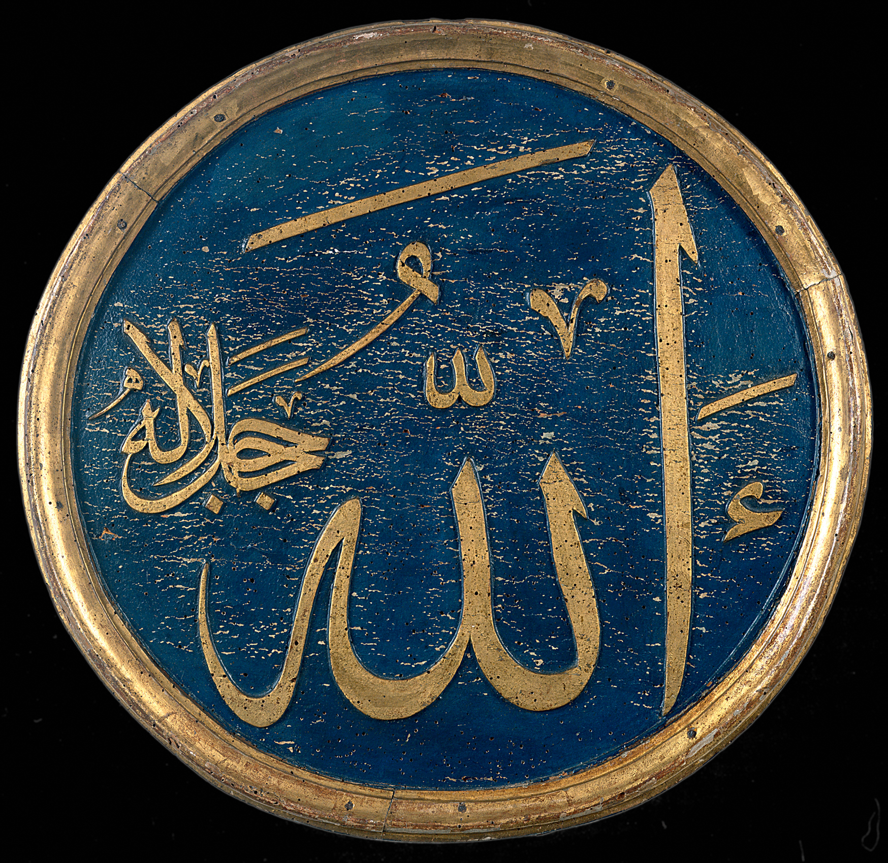 Ottoman mosque architecture was dominated by central domes, the pendentives of which often bore roundels, of painted wood or tilework, with the names of God, Muhammad, Abu Bakr, ‘Uthman, ‘Umar and ‘Ali, and sometimes the names of Hasan and Husayn too, and appropriate prayers for each. The most famous, and the largest, are those designed by the 19th-century calligrapher, Mustafa ‘Izzet in the mosque of Ayasofya (converted from the great Byzantine church of Hagia Sophia) in Istanbul.