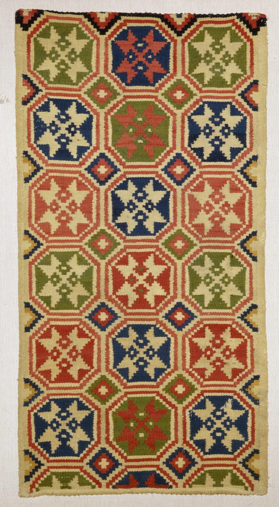 The design of stars in octagons was used in Albo and the neighbouring districts. Dates woven into or embroidered on similar examples in Swedish collections show that it was used at least between 1761 and 1825.