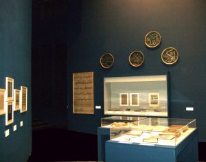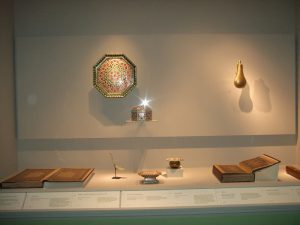Following its success in Abu Dhabi| the exhibition travelled to Paris| where it was shown at the Institut du monde arabe| whose aim in mounting the exhibition – according to the press release -was to promote the understanding and appreciation of Islamic art… The exhibition was curated by Aurélie Clémente-Ruiz and Eric Delpont| both of the Institut du monde arabe| and designed by the Paris architect| Didier Blin. Unlike Sydney and Abu Dhabi| the objects on display were not arranged chronologically| but were divided into three main themes.