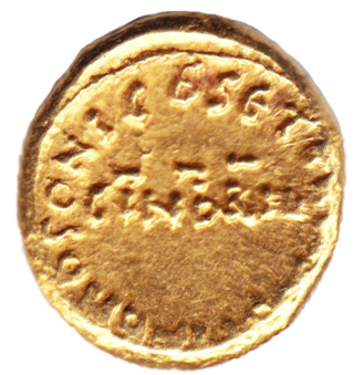 11. Arab-Byzantine gold solidus, NM (North Africa), Indiction III (85/7 AH)