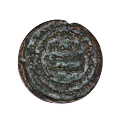6599. Abbasid gold al-mutawwaq dinar struck in silver (forgery), San’a, date unclear