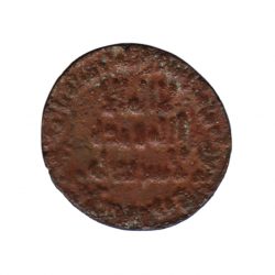 6602. Umayyad copper fals struck by dinar dies (forgery), NM 98 AH