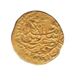 5709. Safavid gold mithqal, Kashan, date off flan (986 AH)