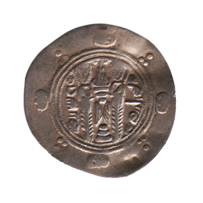 2042. Arab-Sasanian silver hemidrachm, TAPWRSTAN (Tabaristan) 135 PYE