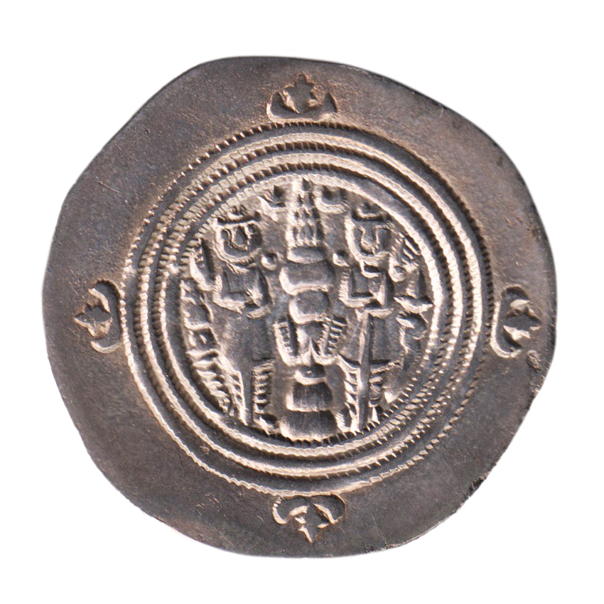 2274. Arab-Sasanian silver drachm, WH (Weh-Ardashir?) 27 YE