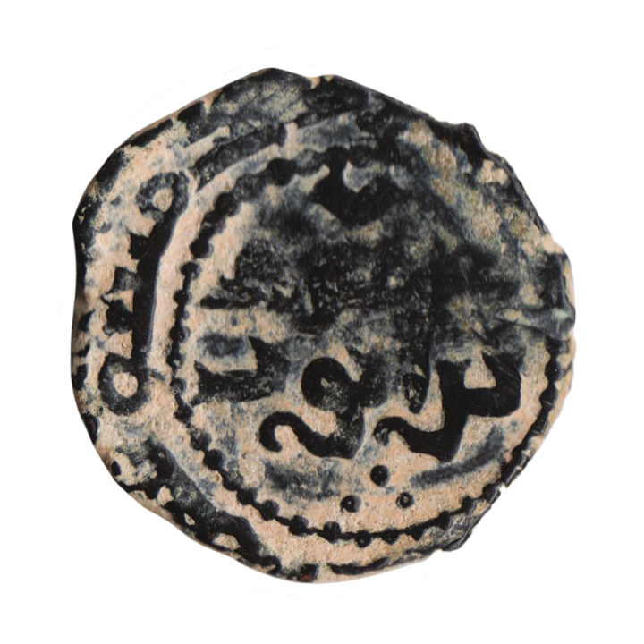 3199. Ayyubid copper fals, Dimashq 585 (?) AH