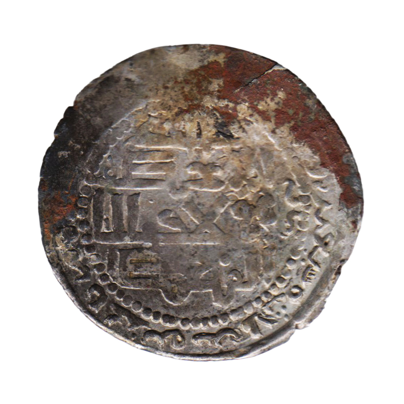 5028. Uncertain dynasty, anonymous, silver dinar? Madinat Tabriz 789 AH?