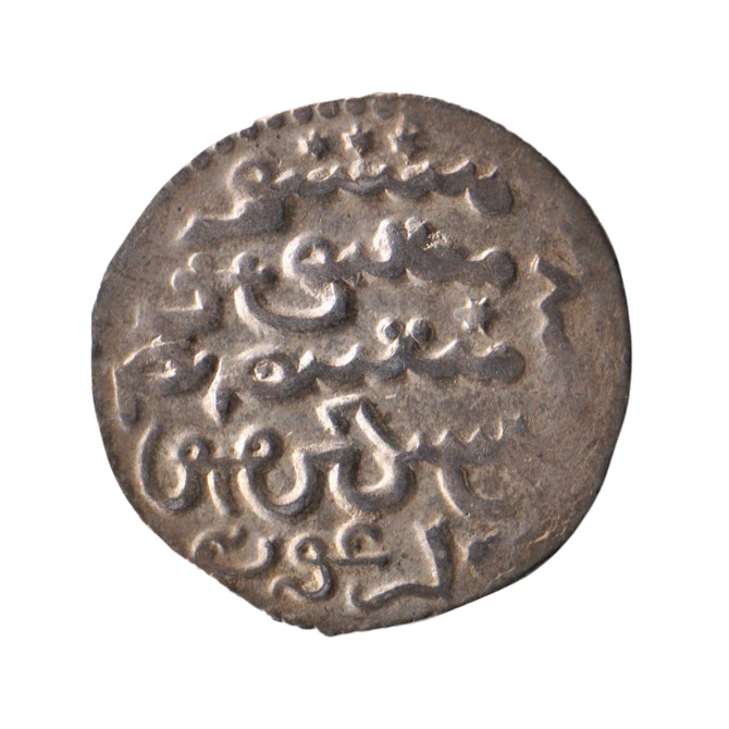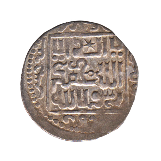 5028. Uncertain dynasty, anonymous, silver dinar? Madinat Tabriz 789 AH?