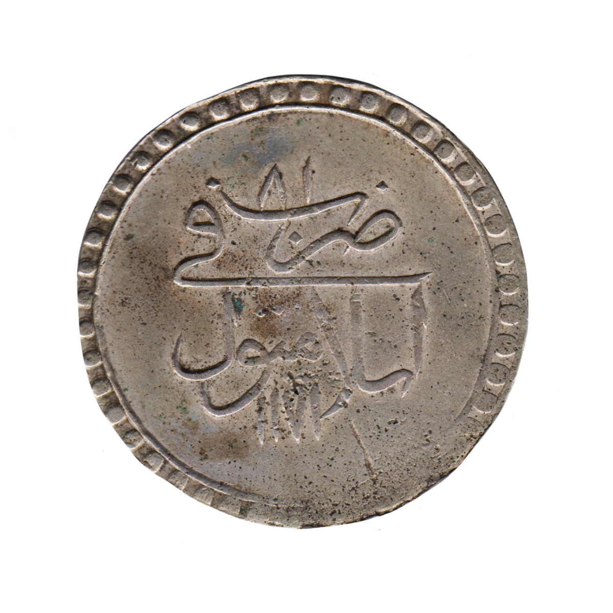 5680. Ottoman Empire, silver dirham, Baghdad, date off flan (1058 AH)