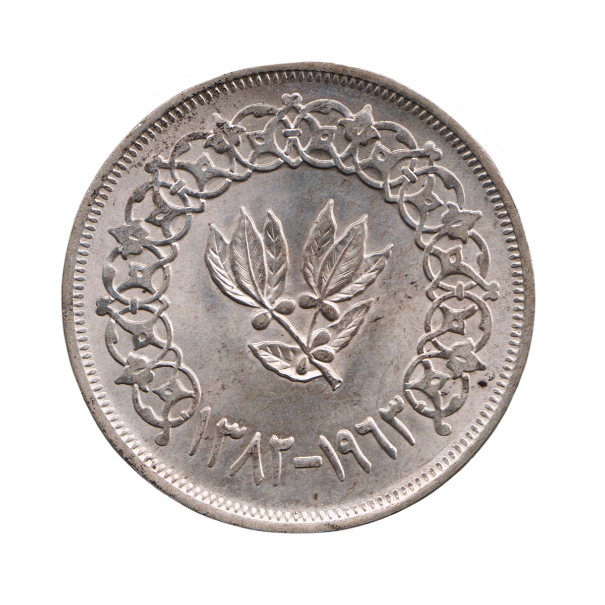 5869. Yemen Arab Republic, silver 1/10 riyal, San’a 1382 AH