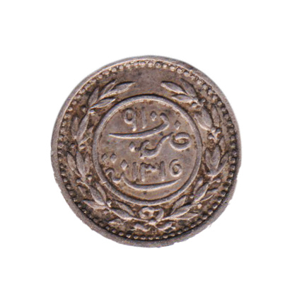 5912. Alawi Sadah of Tarim, silver 24 khamsiyah (910 in Abjad), NM (Tarim) 1315 AH