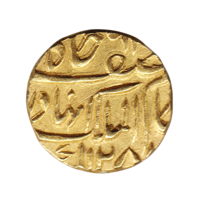 6379. Nizams of Hyderabad, gold mohur, Hydarabad Farkhandah Bunyad 128x AH / r.y. x