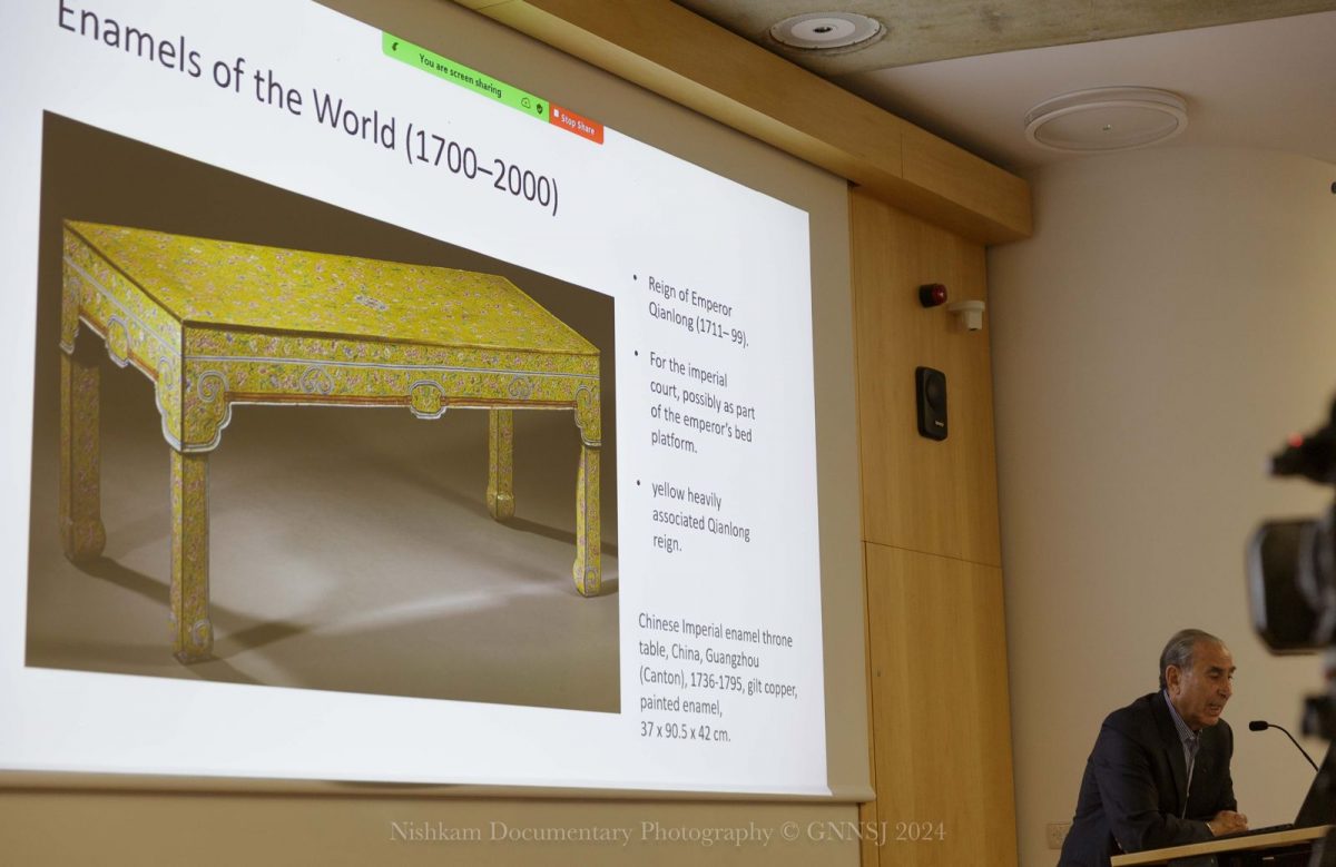 He gave examples of objects from the Khalili Collections, including a 13th century Persian miniature depicting Abrahamic unity, a 15th century Judeo-Arabic astrolabe showing cross-faith collaboration and Japanese Meiji period vases first shown at the 1983 World’s Columbian Exposition in Chicago.