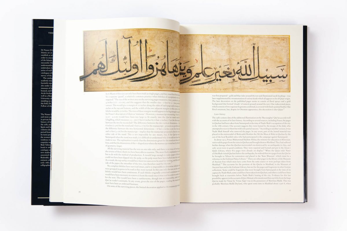 Besides detailed catalogue descriptions, colour illustrations and a section on documentation where colophons are reproduced with translations, the volume contains substantial new studies. These cover the monumental Qur’an previously associated with the Timurid prince Baysunghur ibn Shahrukh; Ruzbihan Muhammad, the most eminent calligrapher and illuminator of Shiraz in the early 16th century; and the great Ottoman calligrapher Ahmed Karahisari.