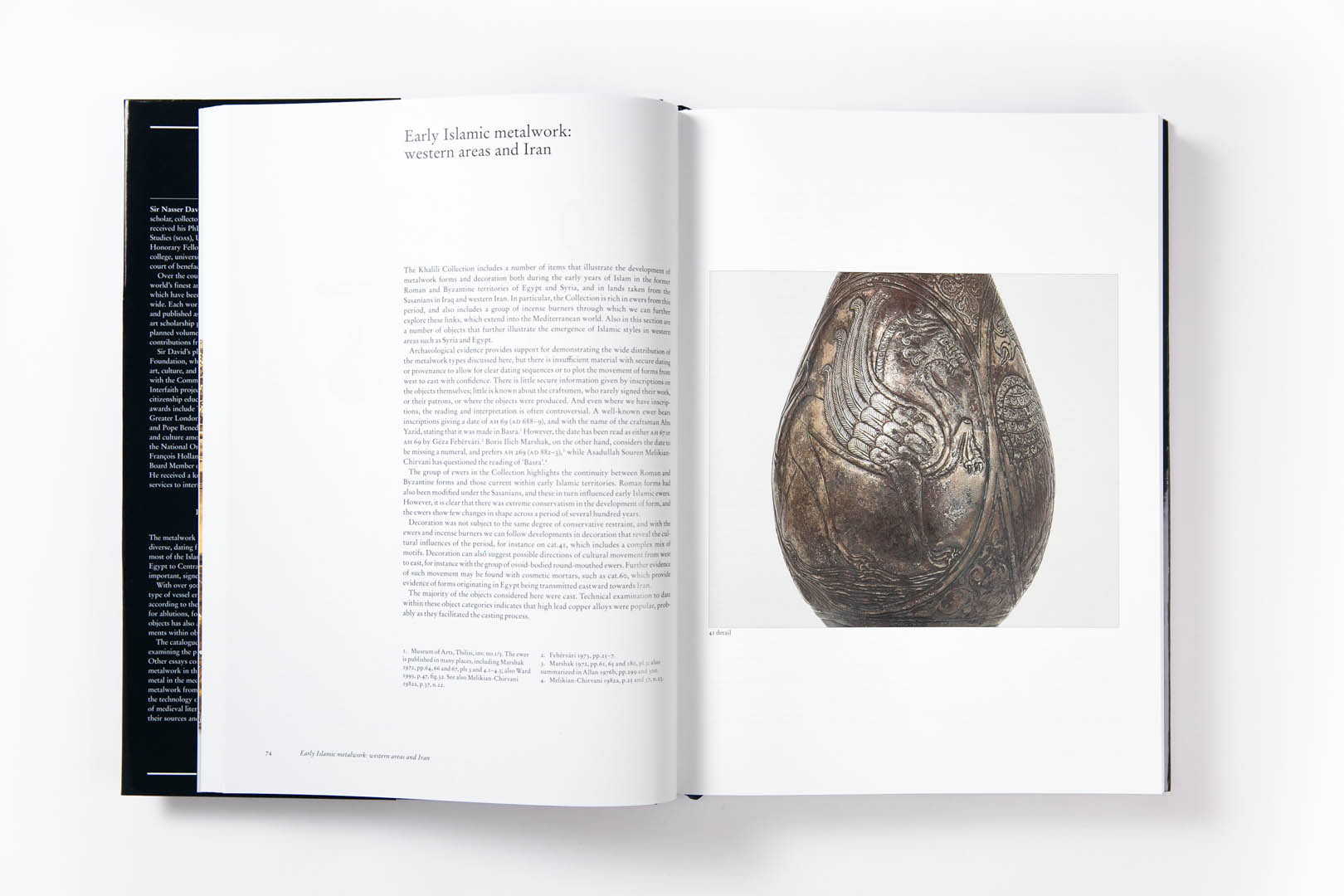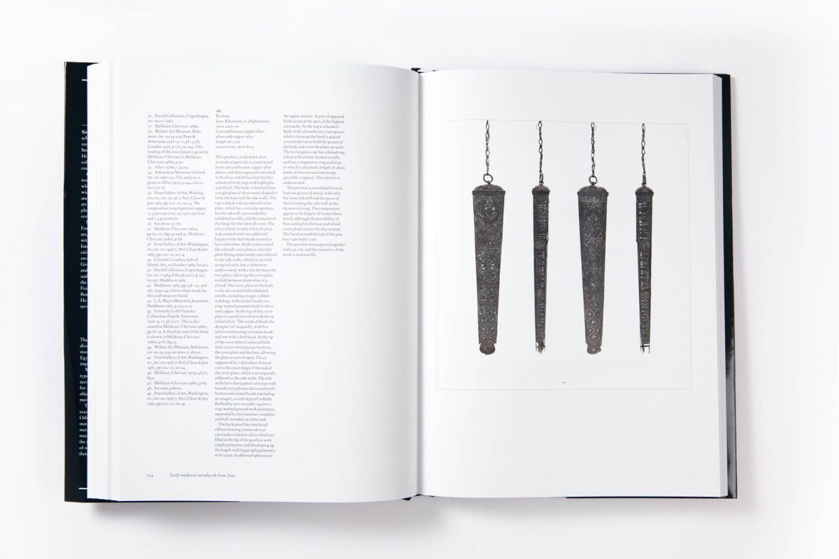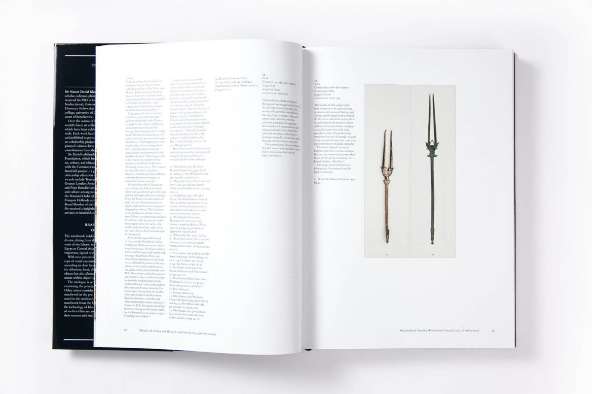 The metalwork in the Collection comprises nearly 1,000 objects, from across the Islamic world, Sicily to India, and dating from the 6th to the early 20th centuries. It is an extraordinary resource for the depth and breadth of object types represented, especially from pre-Mongol Iran; 13th-century Jazira; Ilkhanid, Timurid and Safavid Iran; and 17th- and 18th-century India. Several unique and important pieces are significant for their named patrons, or for bearing dates or artist signatures, which are rare on Islamic metalwork. The volume is a four-part set. The first part includes metalwork from Sasanian Iran and the Islamic world up to the Mongol invasions in eastern Iran in 1220. The second concludes the pre-Mongol section, and continues with Ilkhanid Iran and metalwork from the Jazira, with short sections on Muslim Sicily and Christian Armenian Cilicia, concluding with a short essay on astrological motifs as depicted on metalwork. The third part opens with Timurid Iran, and discusses the metalwork of Mamluk Egypt and Syria, Ottoman Turkey, concluding with Mughal India, and the Deccan. The fourth part covers Safavid and Qajar Iran, together with a series of Mamluk revival objects, and concludes with a discussion on aspects of Islamic metal technology and production.