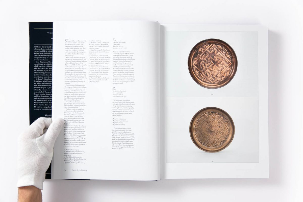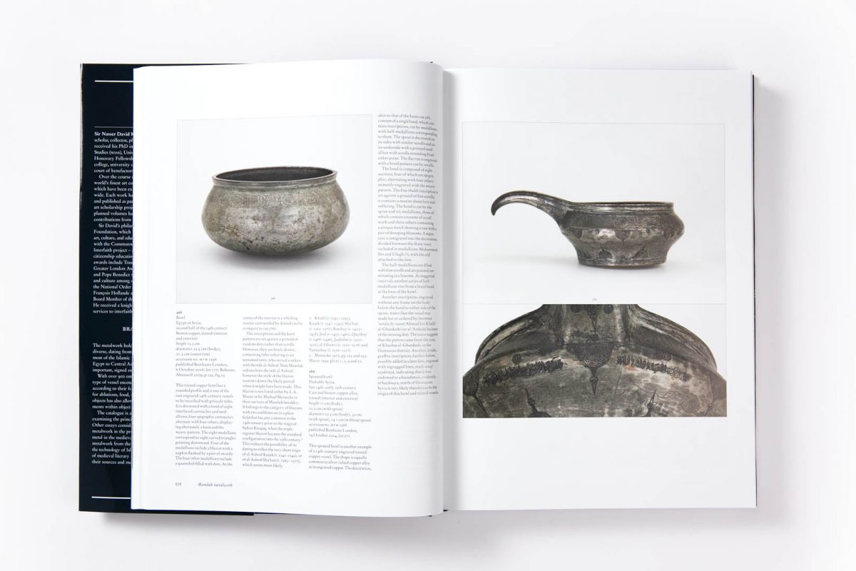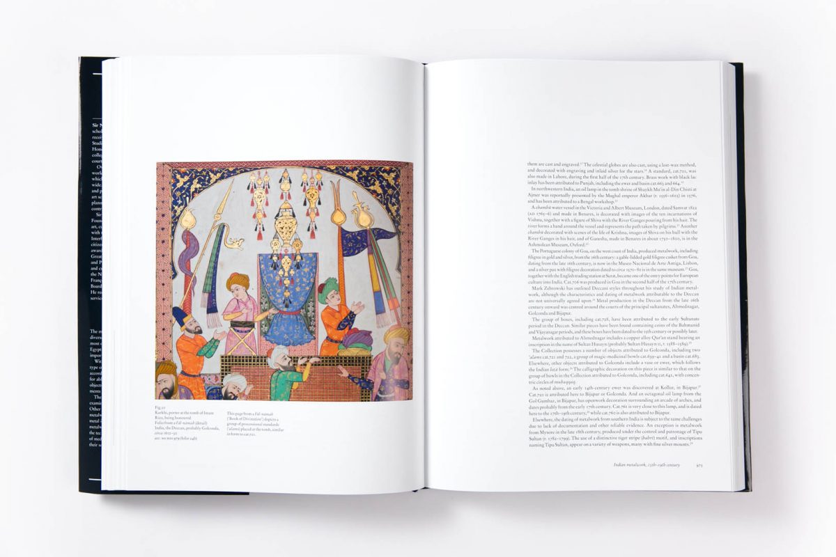 The metalwork in the Collection comprises nearly 1,000 objects, from across the Islamic world, Sicily to India, and dating from the 6th to the early 20th centuries. It is an extraordinary resource for the depth and breadth of object types represented, especially from pre-Mongol Iran; 13th-century Jazira; Ilkhanid, Timurid and Safavid Iran; and 17th- and 18th-century India. Several unique and important pieces are significant for their named patrons, or for bearing dates or artist signatures, which are rare on Islamic metalwork. The volume is a four-part set. The first part includes metalwork from Sasanian Iran and the Islamic world up to the Mongol invasions in eastern Iran in 1220. The second concludes the pre-Mongol section, and continues with Ilkhanid Iran and metalwork from the Jazira, with short sections on Muslim Sicily and Christian Armenian Cilicia, concluding with a short essay on astrological motifs as depicted on metalwork. The third part opens with Timurid Iran, and discusses the metalwork of Mamluk Egypt and Syria, Ottoman Turkey, concluding with Mughal India, and the Deccan. The fourth part covers Safavid and Qajar Iran, together with a series of Mamluk revival objects, and concludes with a discussion on aspects of Islamic metal technology and production.