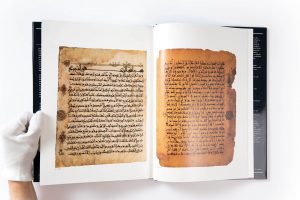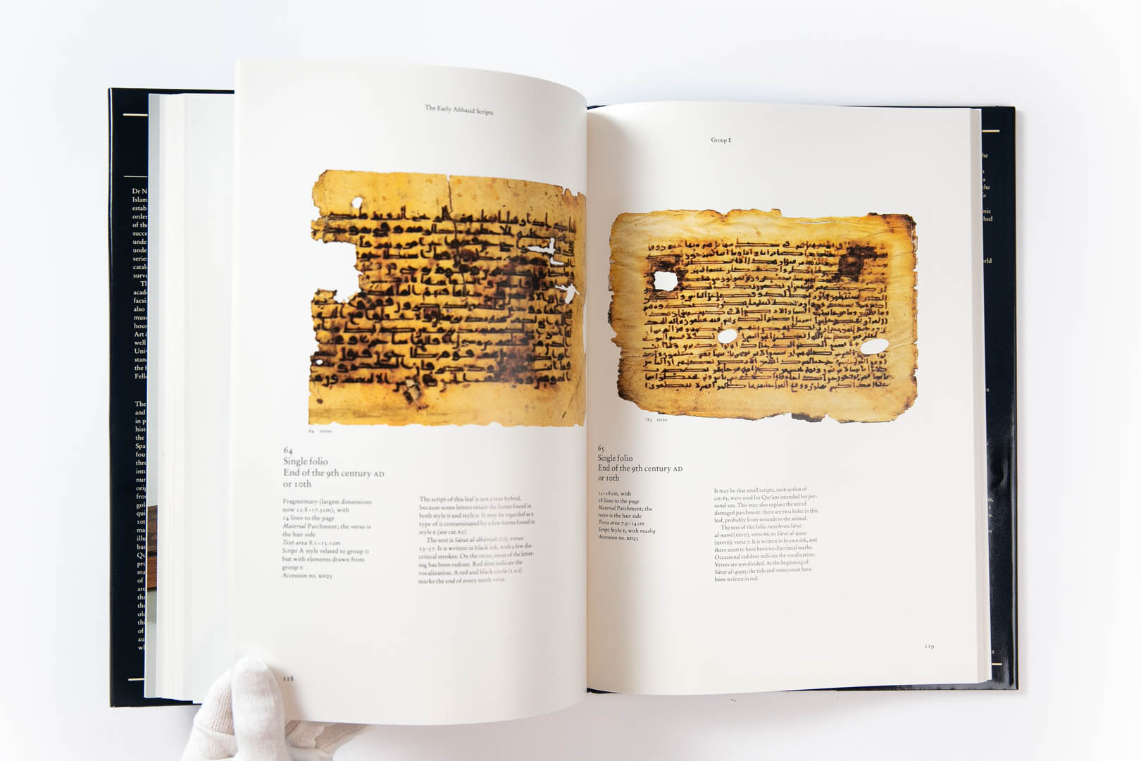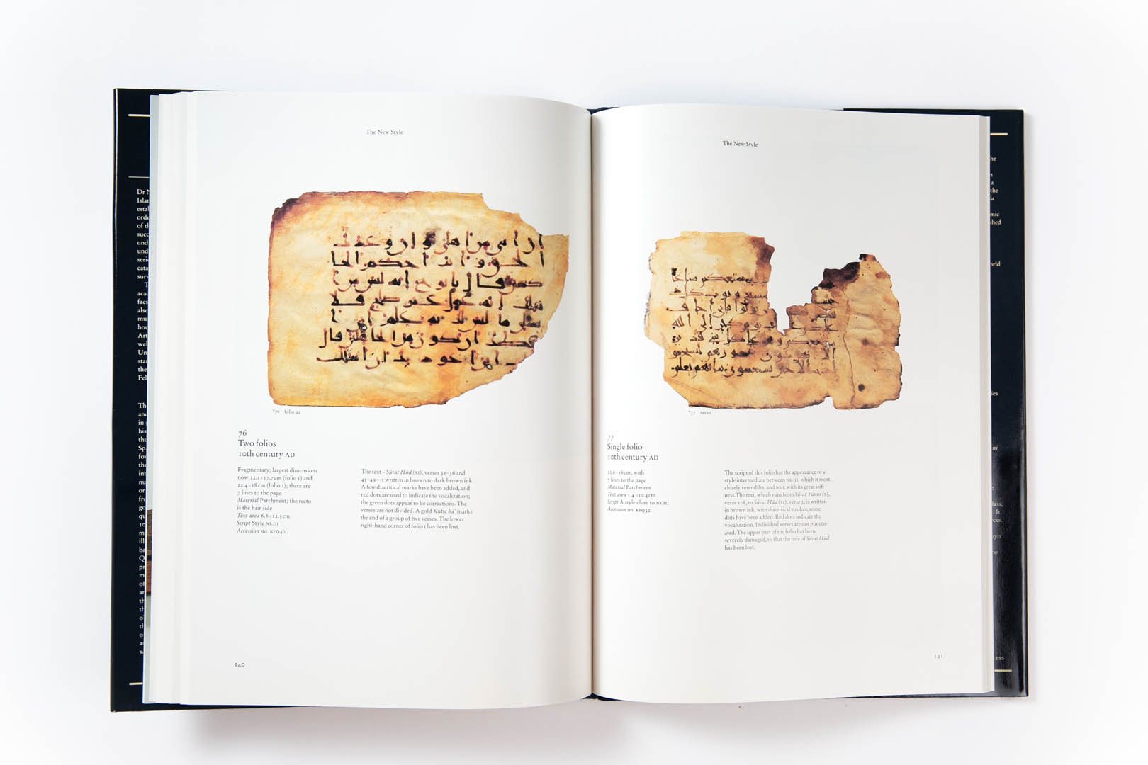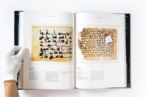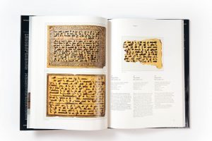 The catalogue contains 98 items, which are described and illustrated in colour. Included among these are a significant number of complete manuscripts, some with their original bindings; two folios from the famous 9th-century Qur’an written in gold on blue parchment; and two quires from a 10th‑century Qur’an, the only copy known to have been produced in Sicily.
