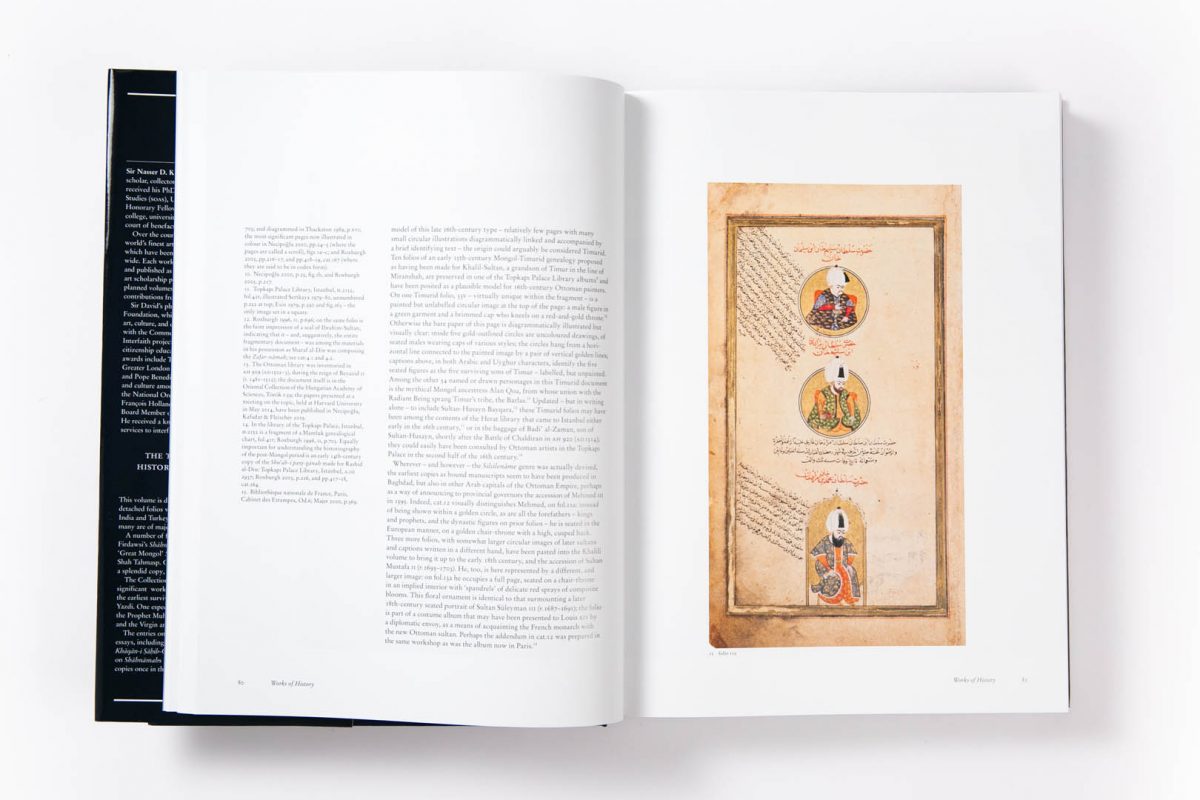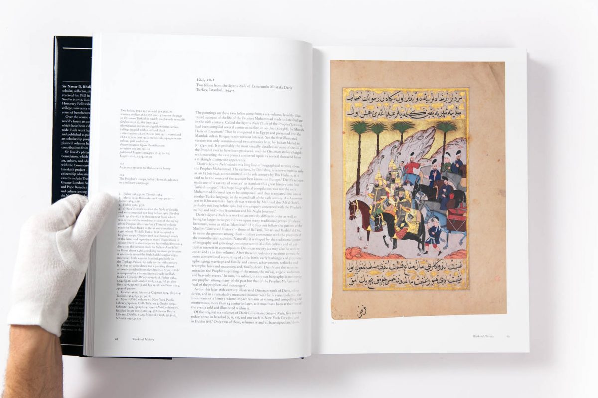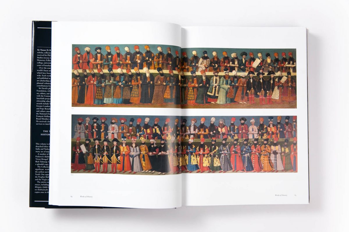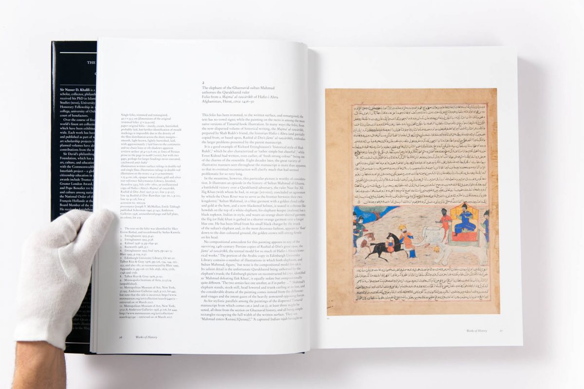 This volume is devoted to the Collection’s illustrated manuscripts and detached folios with historical and heroic epic subjects. Produced in Iran, India and Turkey, they date from the early 14th to the 20th centuries; many are of major artistic importance. A number of folios in the Collection come from manuscripts of Firdawsi’s Shāhnāmah. Among them are a single folio from the Ilkhanid ‘Great Mongol’ Shāhnāmah and 10 from the Shāhnāmah executed for Shah Tahmasp. Complete illustrated manuscripts of Firdawsi’s epic include a splendid copy, with 62 paintings, dated AH 1011 (AD 1602). The Collection also has illustrated folios from several dispersed but significant works of universal and dynastic history, including two from the earliest surviving illustrated copy of the Ẓafarnāmah of Sharaf al-Din Yazdi. One especially important painting is a later 15th-century vision of the Prophet Muhammad and his companions in the company of Moses and the Virgin and Child.