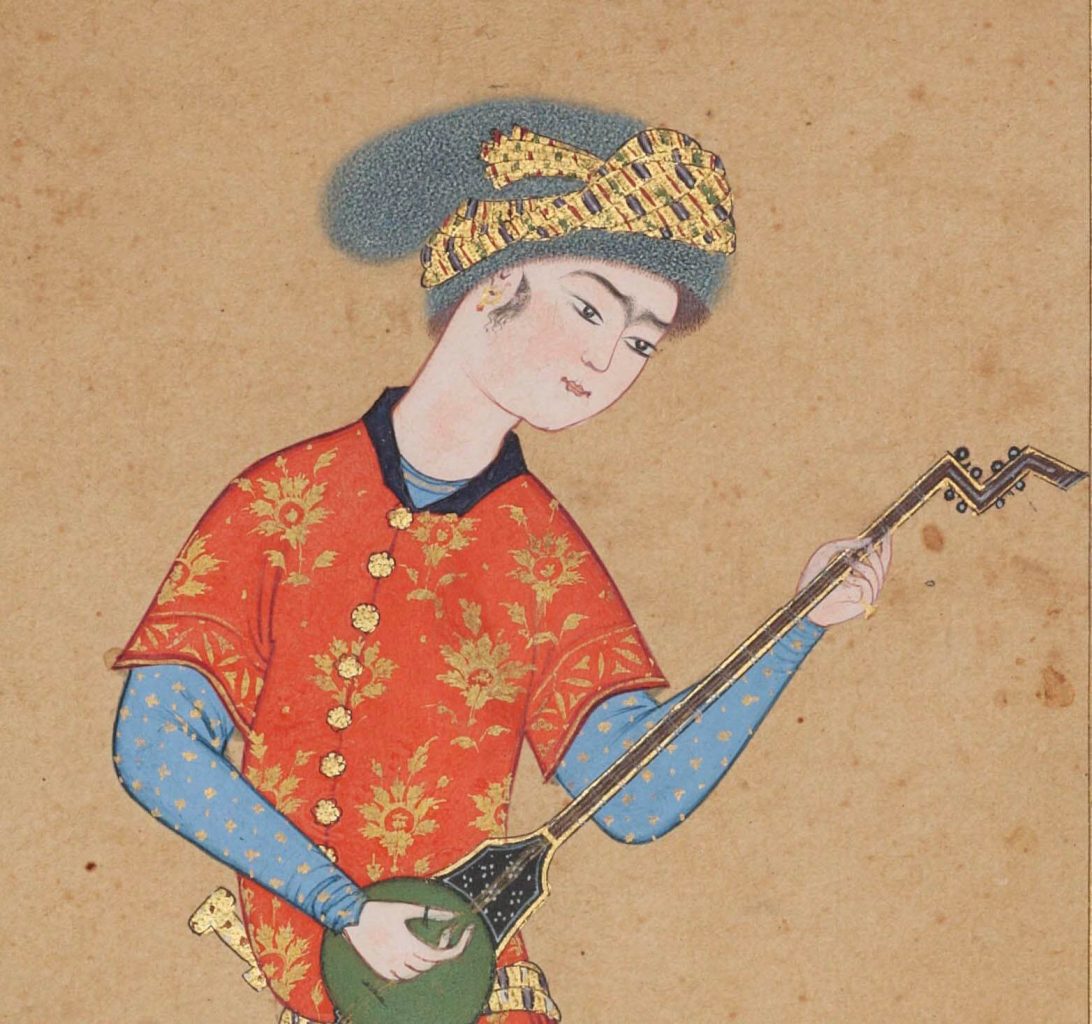 The large group of detached folios from Iran includes several of the late 15th century in the style of Muhammad Siyah Qalam (otherwise best represented in albums in the Topkapı Palace Library). Particularly strong in drawings from 17th-century Isfahan, it includes works by its most famous painters, Riza-yi ‘Abbasi, Muhammad Qasim, Mu‘in Musavvir, and the eclectic artists Muhammad Zaman, ‘Ali Quli Jubbah-dar and Shaykh ‘Abbasi.