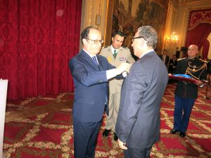 At a special ceremony in the Elysée Palace on 11th April, French President Francois Hollande decorated Professor Sir Nasser D. Khalili with the French Republic’s highest honour, the rank of officier in the ordre nationale de la legion d’Honneur. Sir David received the decoration for his work in the pursuit of peace, education and culture among nations. Khalili joins an esteemed list of British recipients of the Legion of Honour that include Winston Churchill, Graham Greene, Paul McCartney and J.K. Rowling.