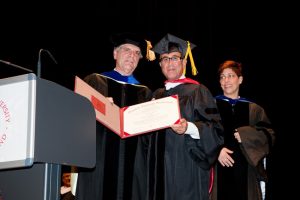 Receiving the honorary Doctorate of Humanities from Professor P. Gregory Warden, president of the Franklin University in Lugano, Switzerland.
