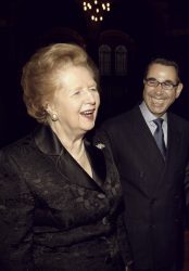 Receiving the honour, Knight Commander of the Royal Order of Francis I (KCFO) along with Baroness Thatcher.