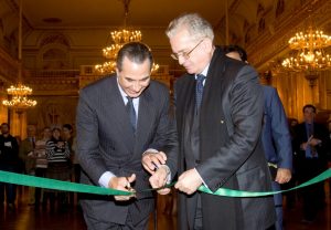 With former Prime Minister of Malta, Mr. Lawrence Gonzi at the opening of the exhibition Metal Magic: Spanish Treasures from the Khalili Collection at the National Museum of Archaeology in Valletta, Malta. 8 November 2011 - 29 April 2012