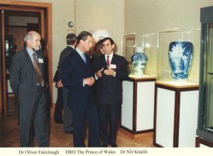 The Prince of Wales opening the exhibition Treasures of Imperial Japan, Ceramics from the Khalili Collection at the National Museum of Wales. 25 October 1994 - 29 January 1995