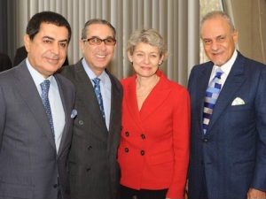 At the High Panel on Peace and Dialogue among Cultures, UNESCO, Paris, with Nassir Abdulaziz Al-Nasser, President of the 66th session of the United Nations General Assembly, Irina Bokova, Director-General of UNESCO, and HRH Prince Turki Al Faisal Al Saud, Chairman, Board of Directors, King Faisal Centre for Research and Islamic Studies.